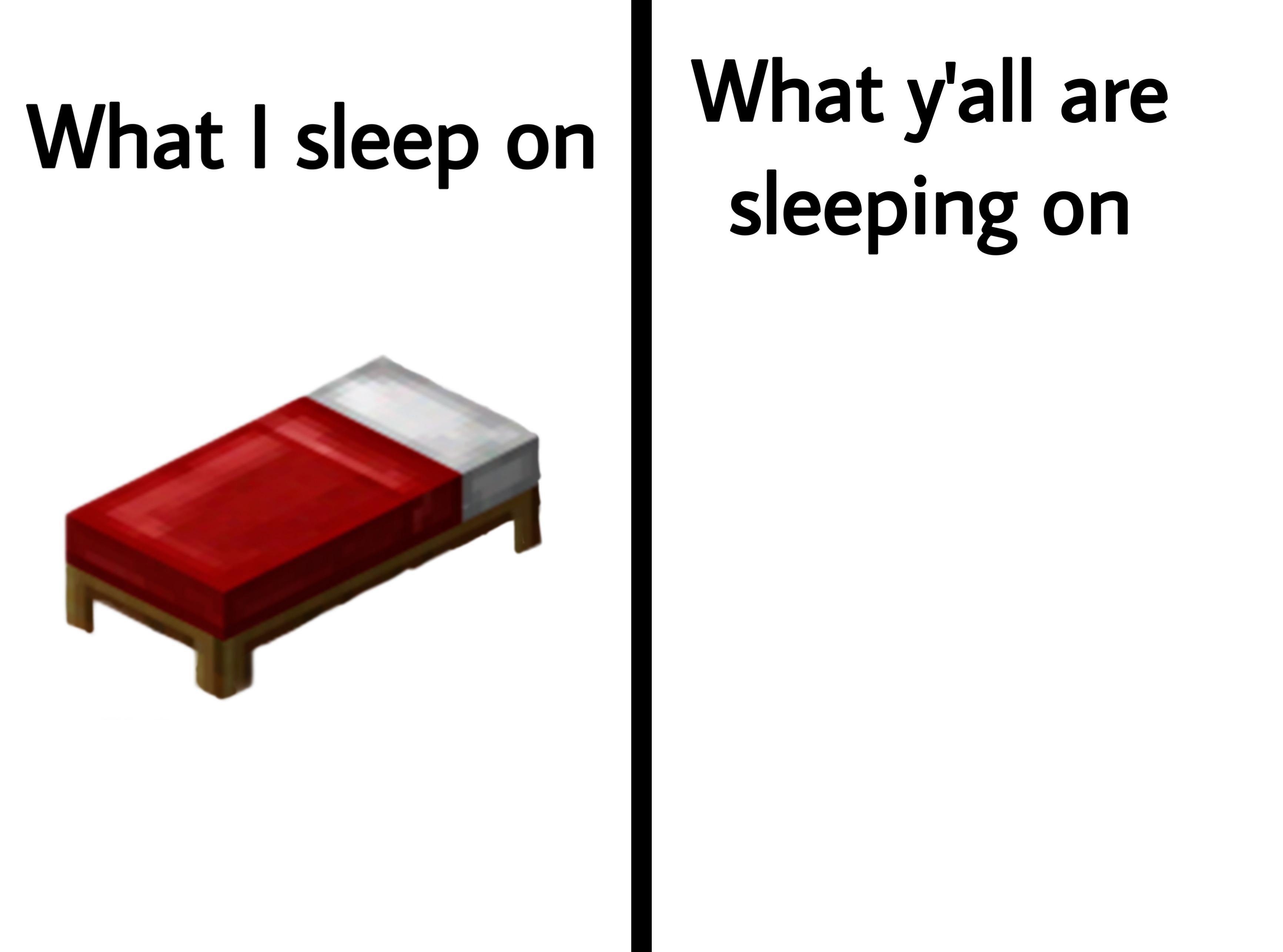 . 6.1m subscribers in the minecraft community. For each color of bed, there is an appropriate dye and to craft a red bed, the player will need at least one red dye.Up until that point, a bed would always appear with red sheets minecraft bed meme. Igloo a red bed naturally generates in each igloo.