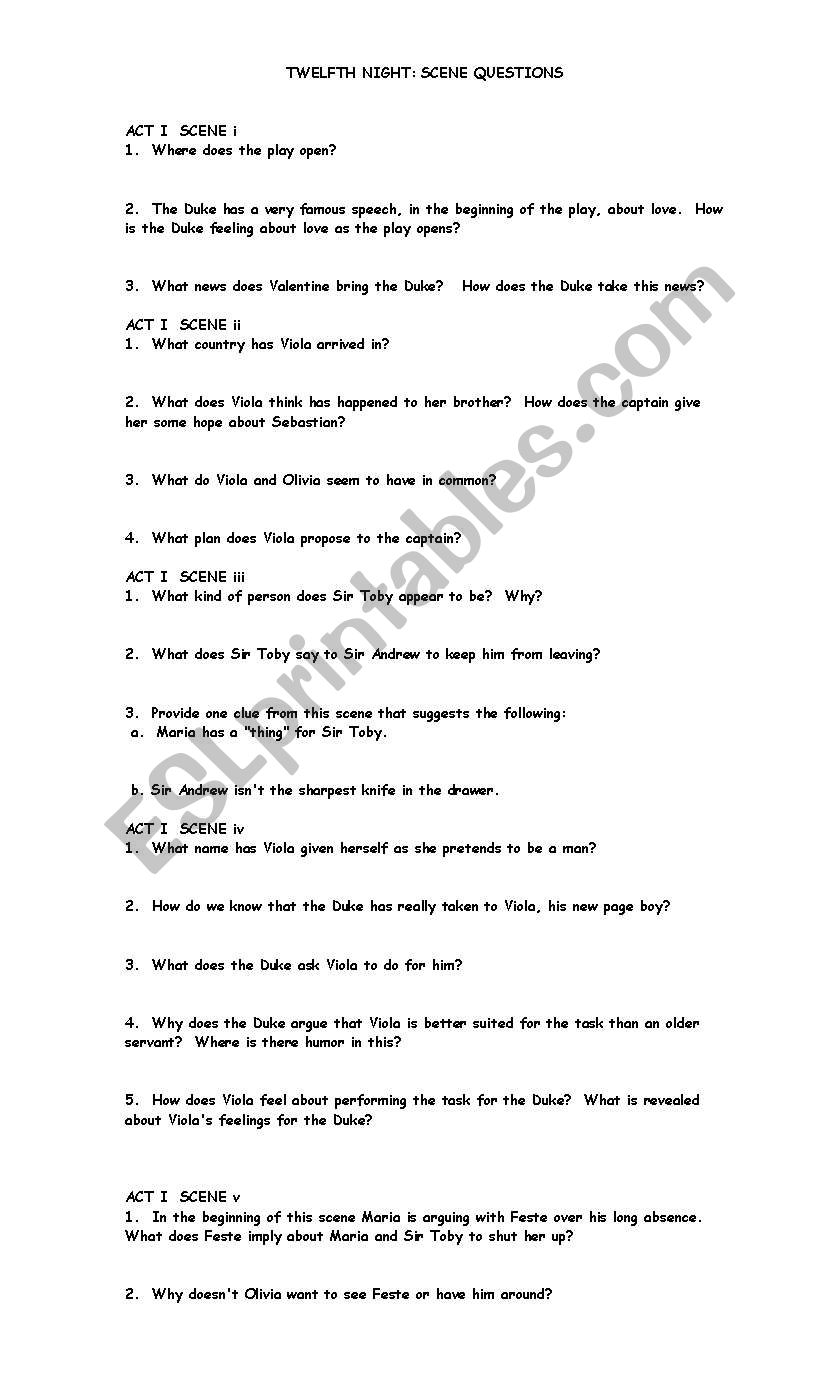 Twelfth Night Worksheets Pdf